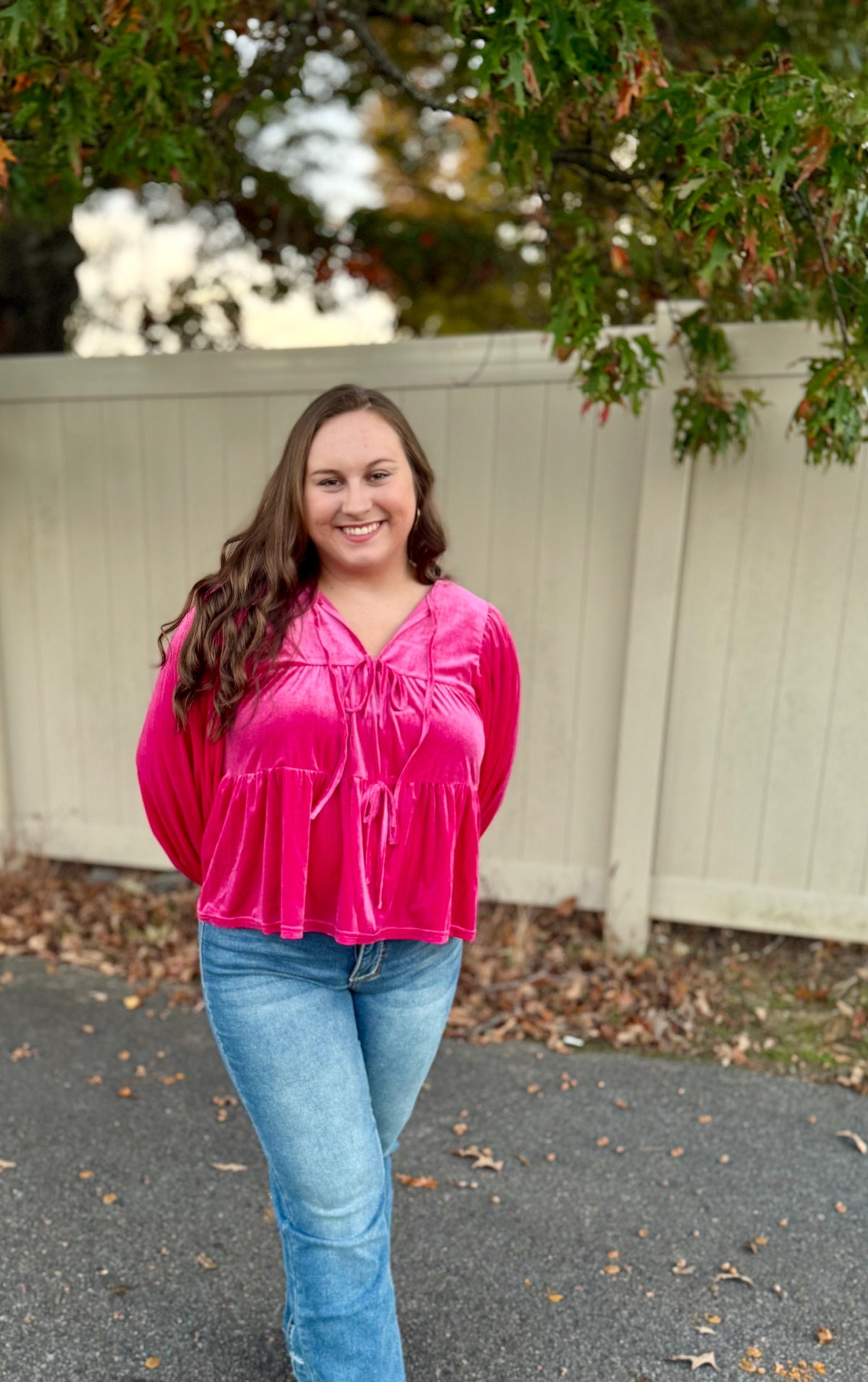 Beautiful velvet top with bow tie front.