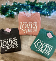 Inform when this item available JUST A GIRL WHO LOVES JESUS SWEATSHIRT