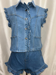 Anniewear Comfort Stretch Denim Ruffle Vest