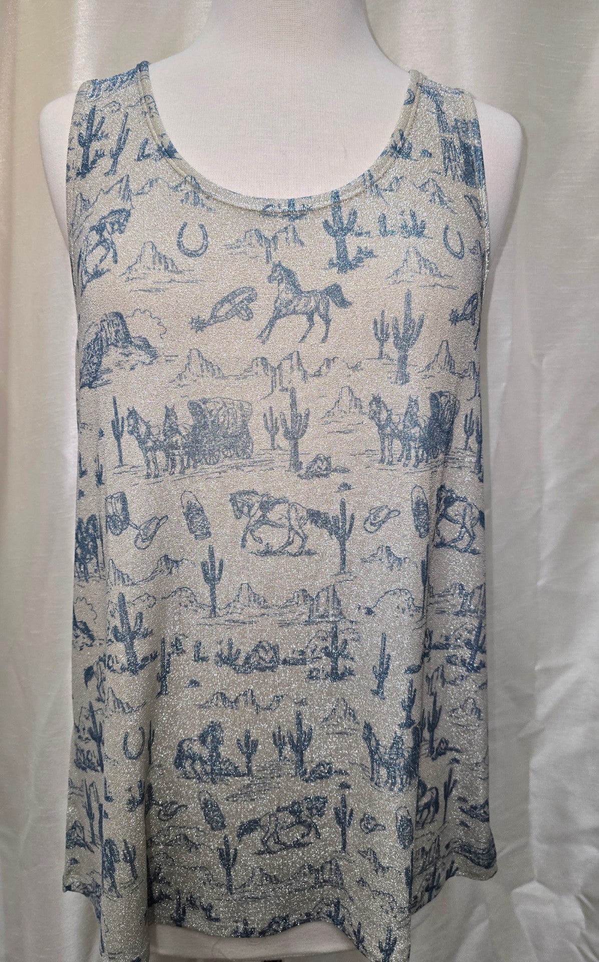 Blue Old Western Sparkle Tank Top – OLS-4844 - S