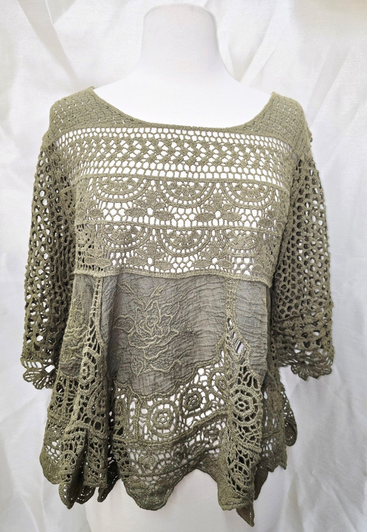 Olive Short Crochet Top – OLS-4819 - ONE SIZE